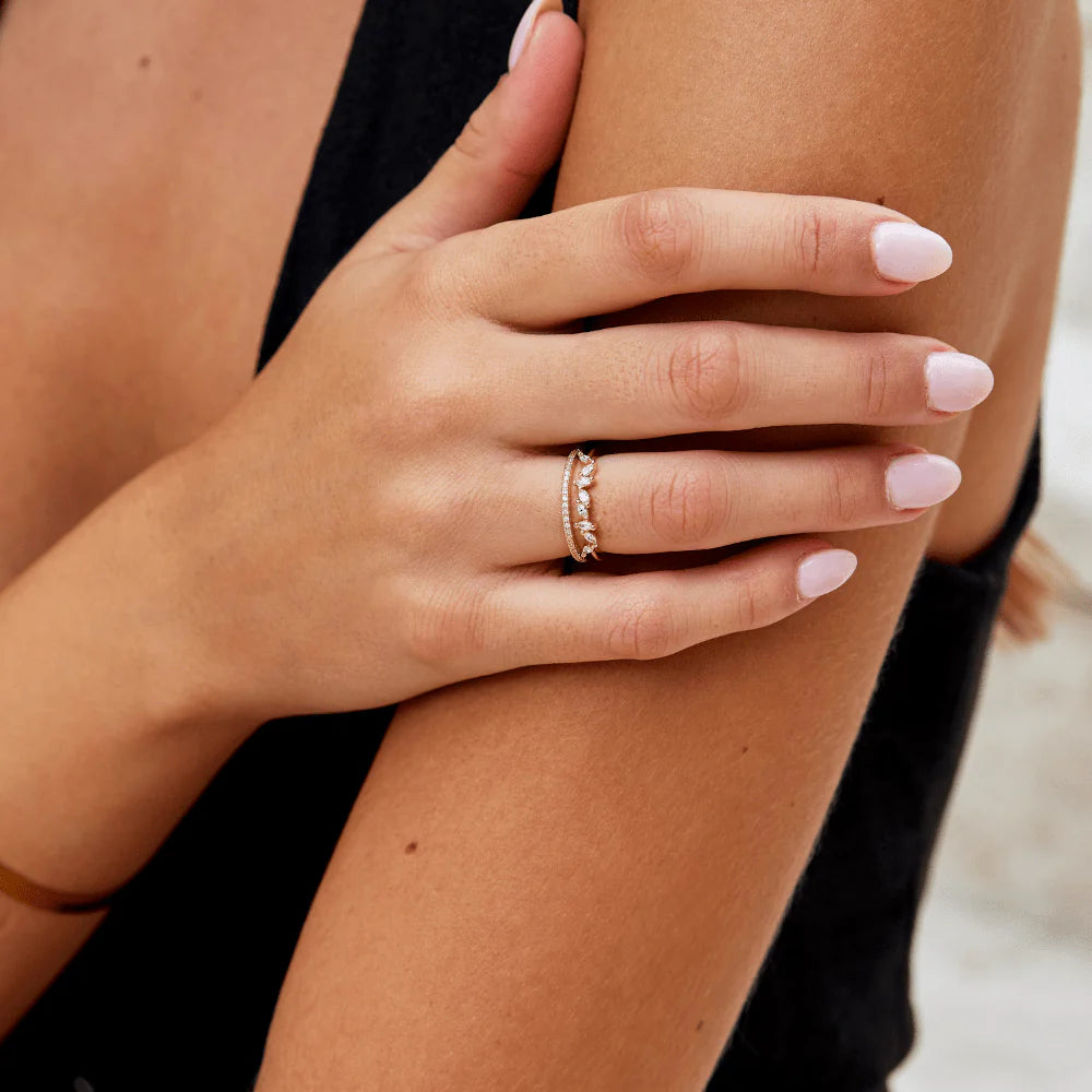 Dale a tu estilo un toque de sofisticación con el Anillo Lumière™, una pieza única que combina la delicadeza de los cristales con el lujo del baño en oro de 18K. Su diseño refinado y atemporal lo convierte en el accesorio perfecto para cualquier ocasión, desde eventos especiales hasta el día a día.