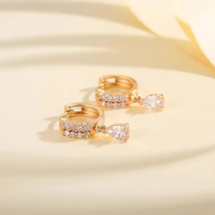 Los Pendientes Gota Real™ están diseñados para mujeres que valoran el lujo discreto y la sofisticación diaria. Su silueta de lágrima, con un deslumbrante cristal central, aporta ese toque de glamour que realza tu rostro sin esfuerzo.